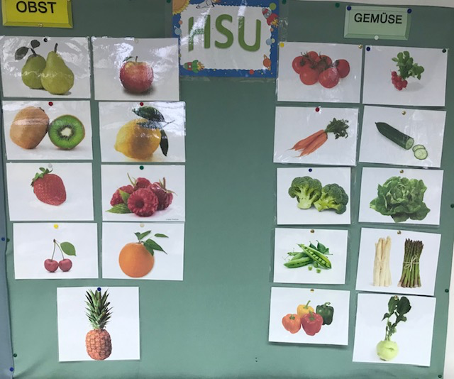Im HSU-Unterricht haben wir die verschiedensten Obstsorten kennengelernt mit dem Namen und den entsprechenden Farben.